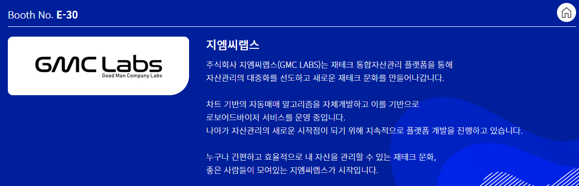 저희 지엠씨랩스는 2019 부산머니쇼 참가에 이어서