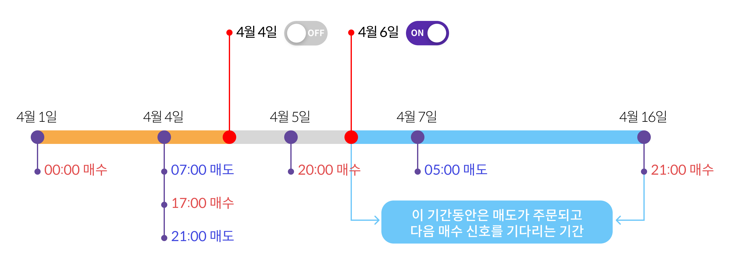 OFF 상태의 경우 매매가 발생하지 않는 점을 유의하시기 바랍니다.