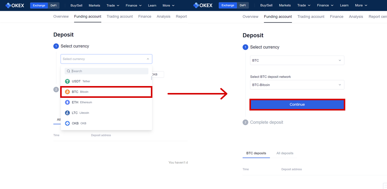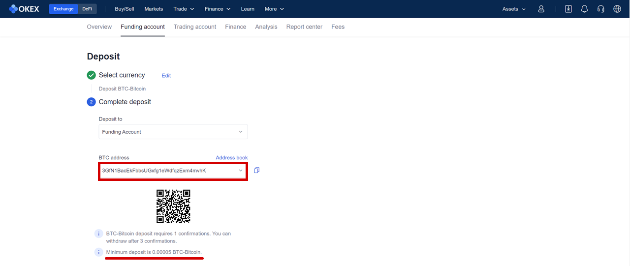 4 – 1. 1번 ■Deposit crypto를 선택한 경우: 타 거래소에서 코인 보내기