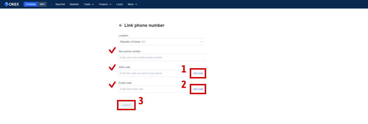 (오케이엑스(OKEX) 거래소 회원가입 시 휴대폰 번호를 통한 회원가입(Sign up with phone)을 한 경우 생략해주세요.)