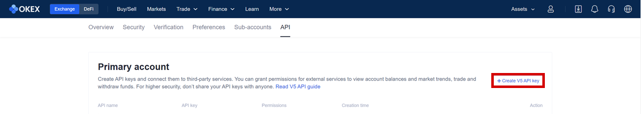5. 현재 페이지에서 화면 우측에 있는 ■Create V5 API Key 버튼을 클릭합니다.