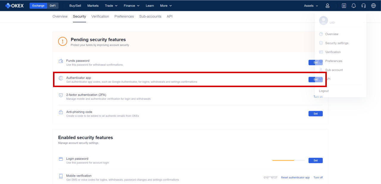 이로써 오케이엑스(OKEX)에서 OTP 사용하기 설정이 완료되었습니다.