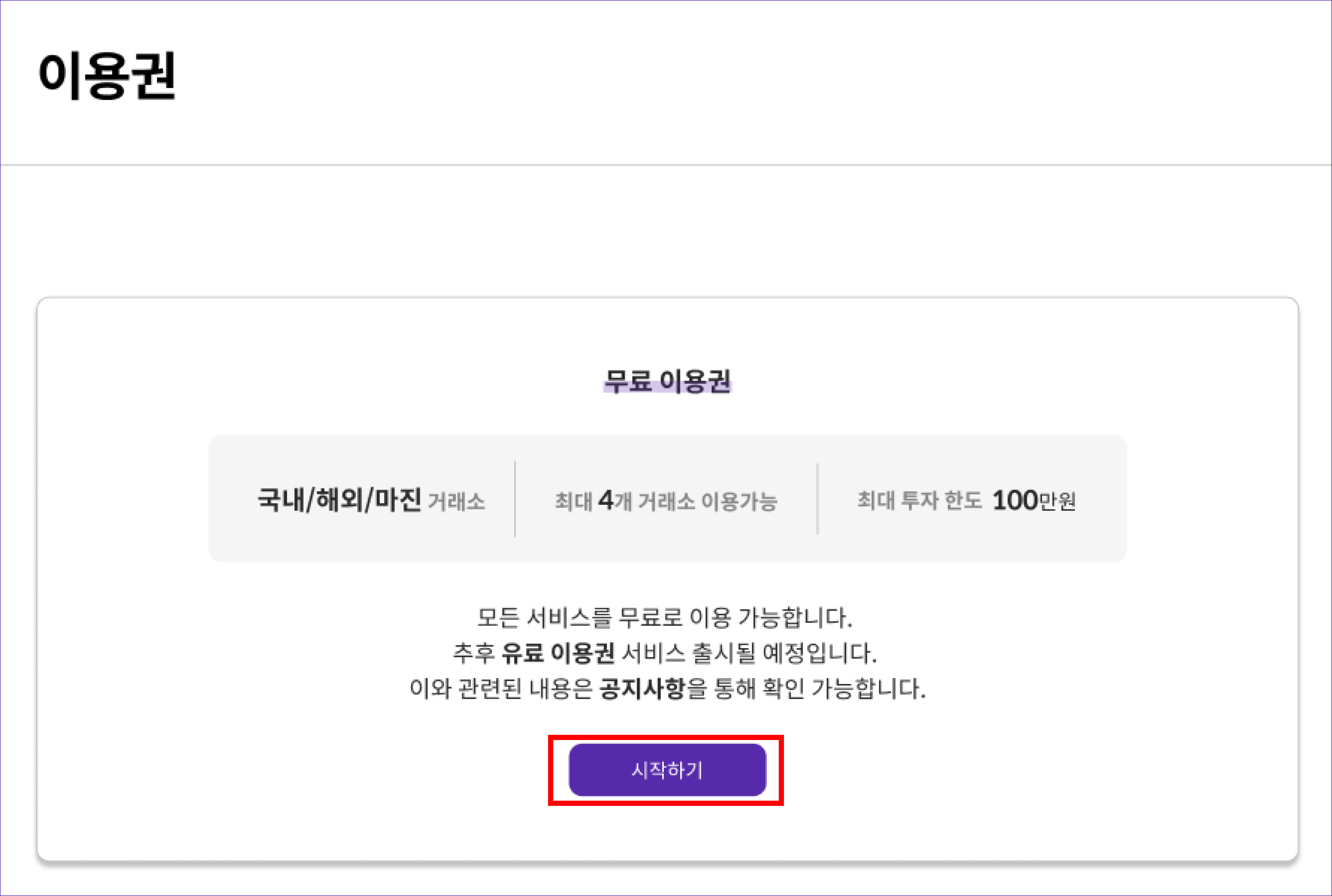 * 현재 모든 서비스를 무료로 이용 가능합니다. 추후 유료 이용권 서비스 출시 후, 유료 이용권에 관한 안내가 진행될 예정입니다.