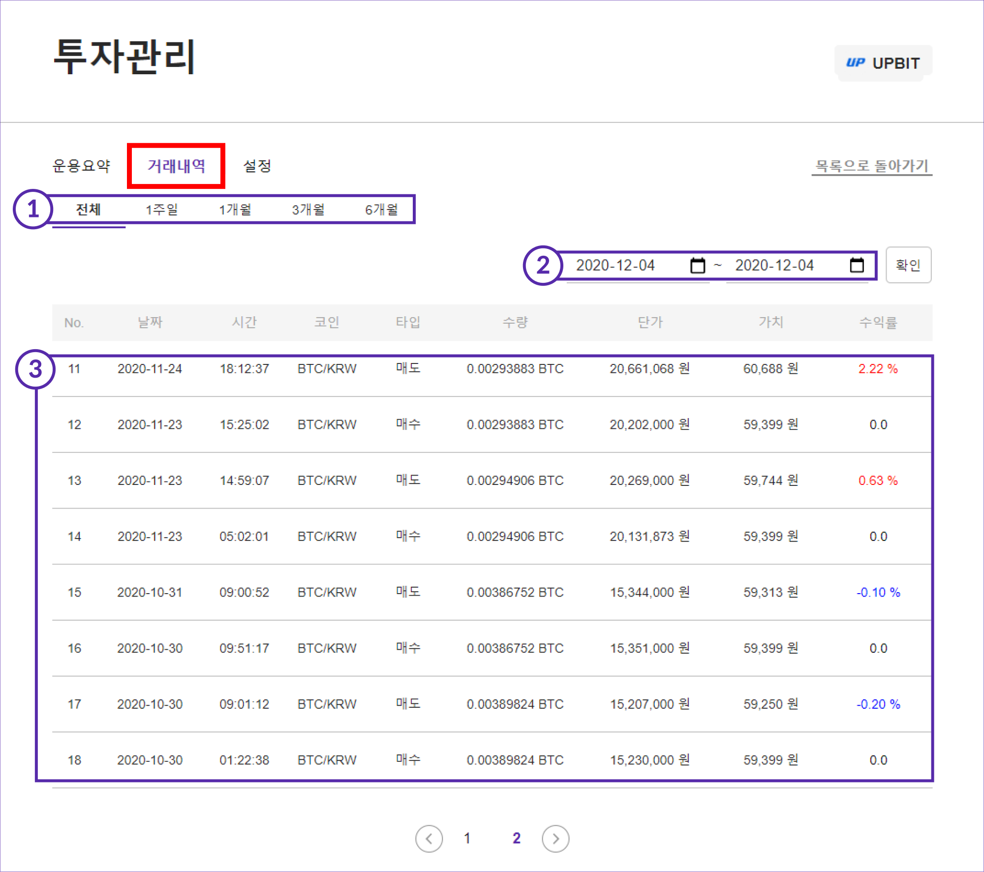 ③ 거래 내역 : 설정된 기간 내에 일어났던 모든 거래 내역을 상세하게 확인할 수 있습니다.