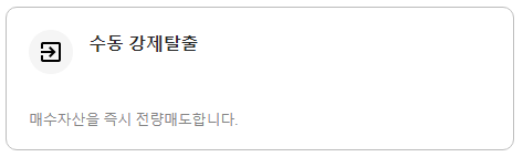 자동 매매 신호에 따라 매수(진입)한 수량을 모두 시장가로 매도(청산) 합니다. 긴급하게 원화를 출금할 때, 포지션 정리 용도로 활용됩니다.