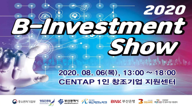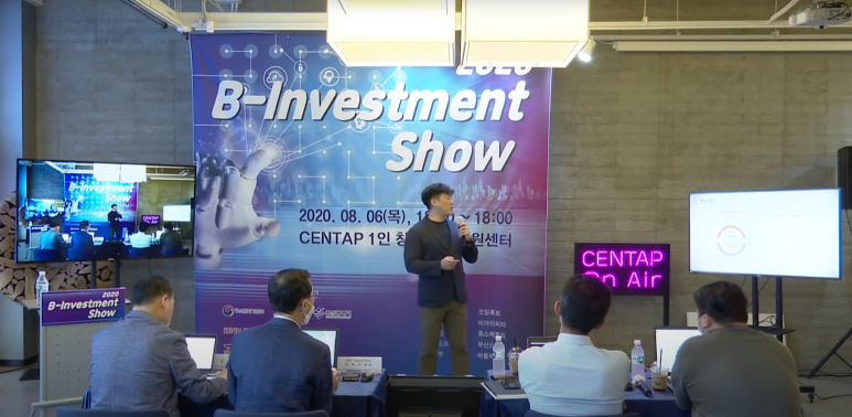'B-Investment Show'는 투자유치를 위한 IR Day이며, 지엠씨랩스가 포함되어 있는 BNK핀테크랩 1기 기업을 포함하여 부산 및 경남 지역의 10개 스타트업이 발표를 진행하였으며 코로나19로 인해 대규모 오프라인 행사가 아닌 유튜브 라이브 생중계로 진행되었습니다.