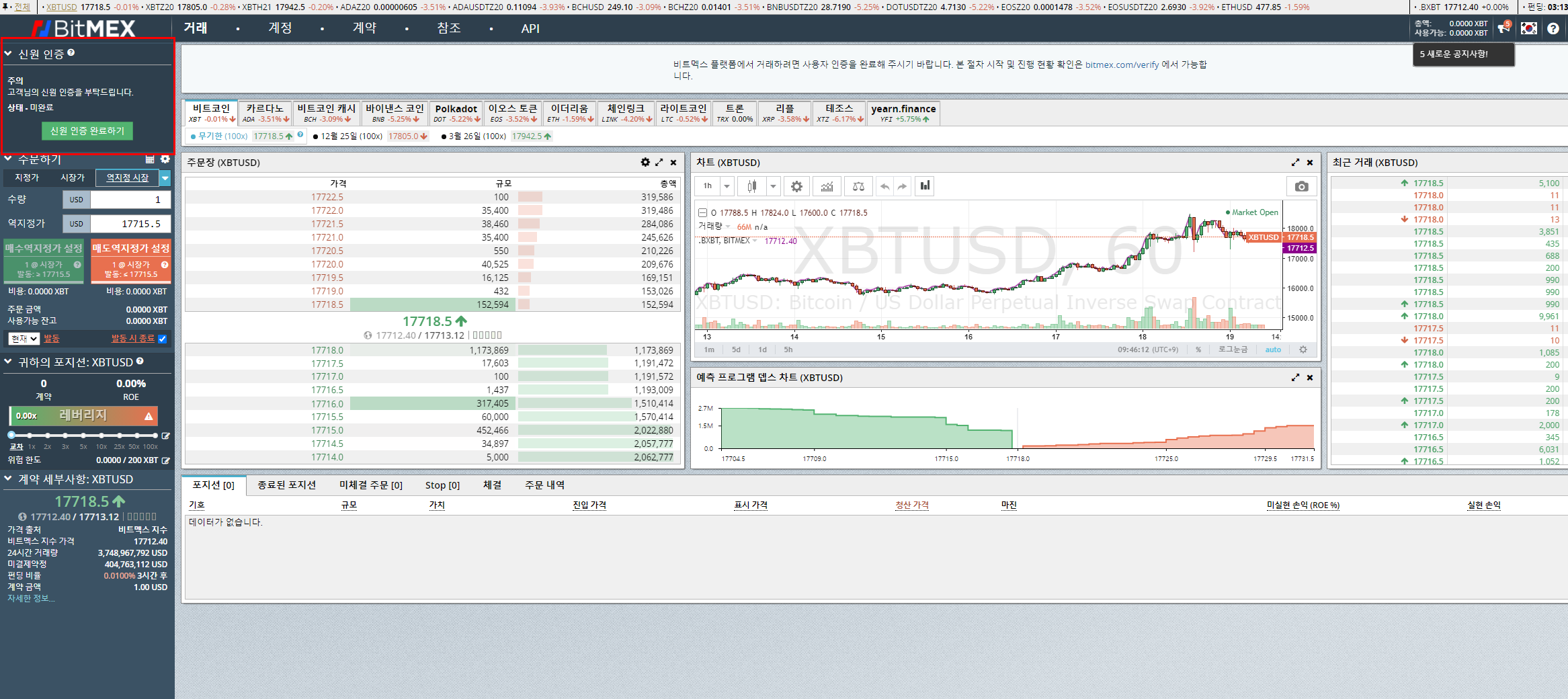2021년 2월 12일 이후에는 신원이 확인된 이용자만 비트멕스에서 거래할 수 있습니다.