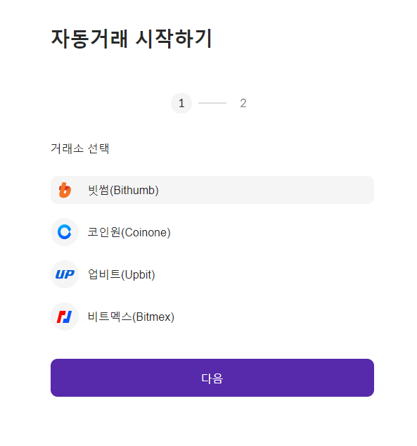 - 거래소(빗썸, 코인원, 업비트, 비트멕스)를 선택해주세요.