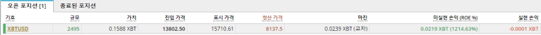 현재 보유 중인 포지션의 규모를 비트코인으로 환산한 값입니다.