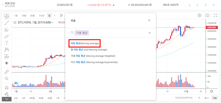 2. ■ 이동 평균을 검색해서 클릭한다.