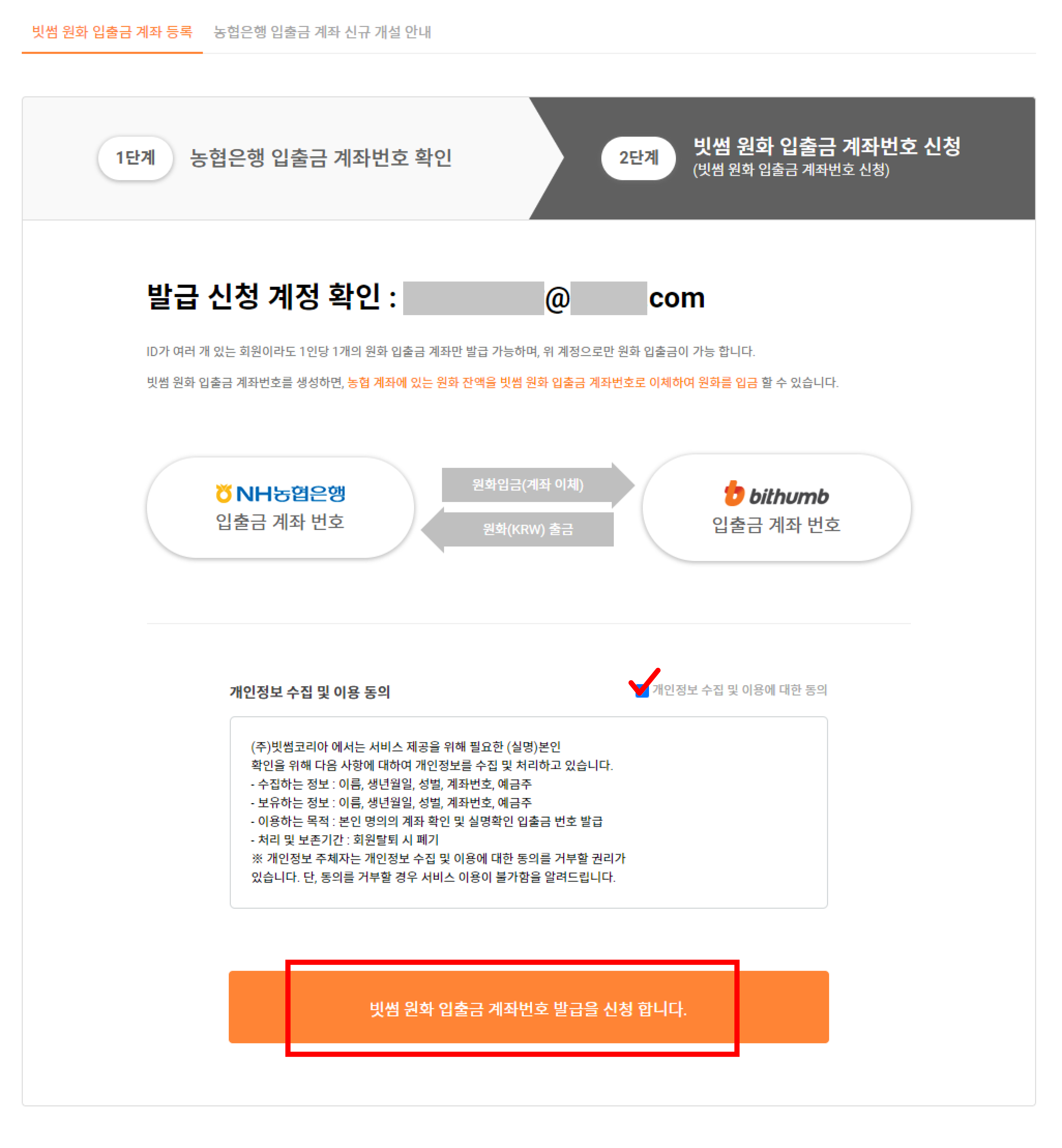 불리고 서비스와 빗썸 거래소를 연결하기 위해서는 농협 계좌(농협 중앙회 O, 단위 농협 X, 지역 농협 X)를 꼭 가지고 있으셔야 합니다.