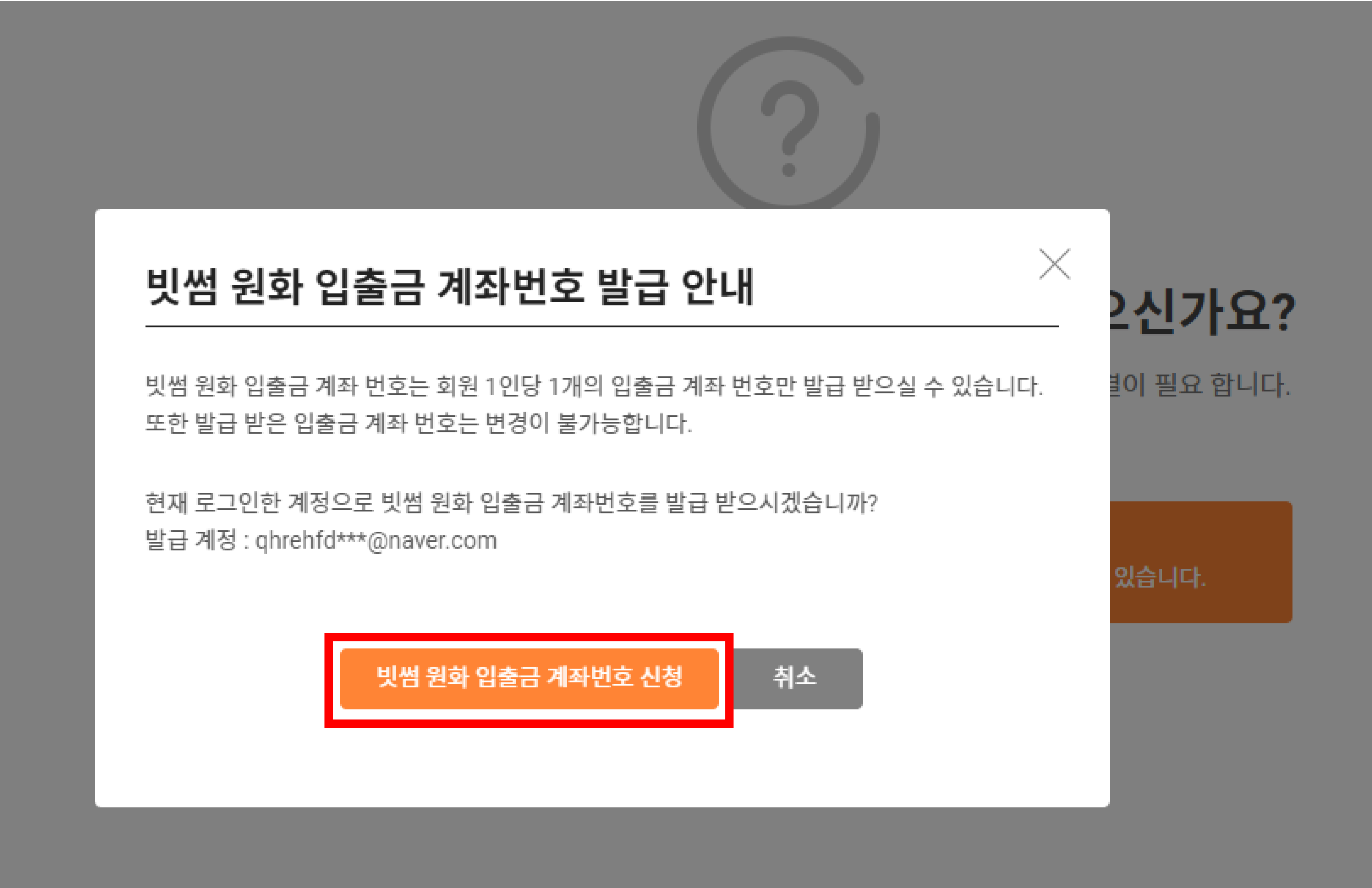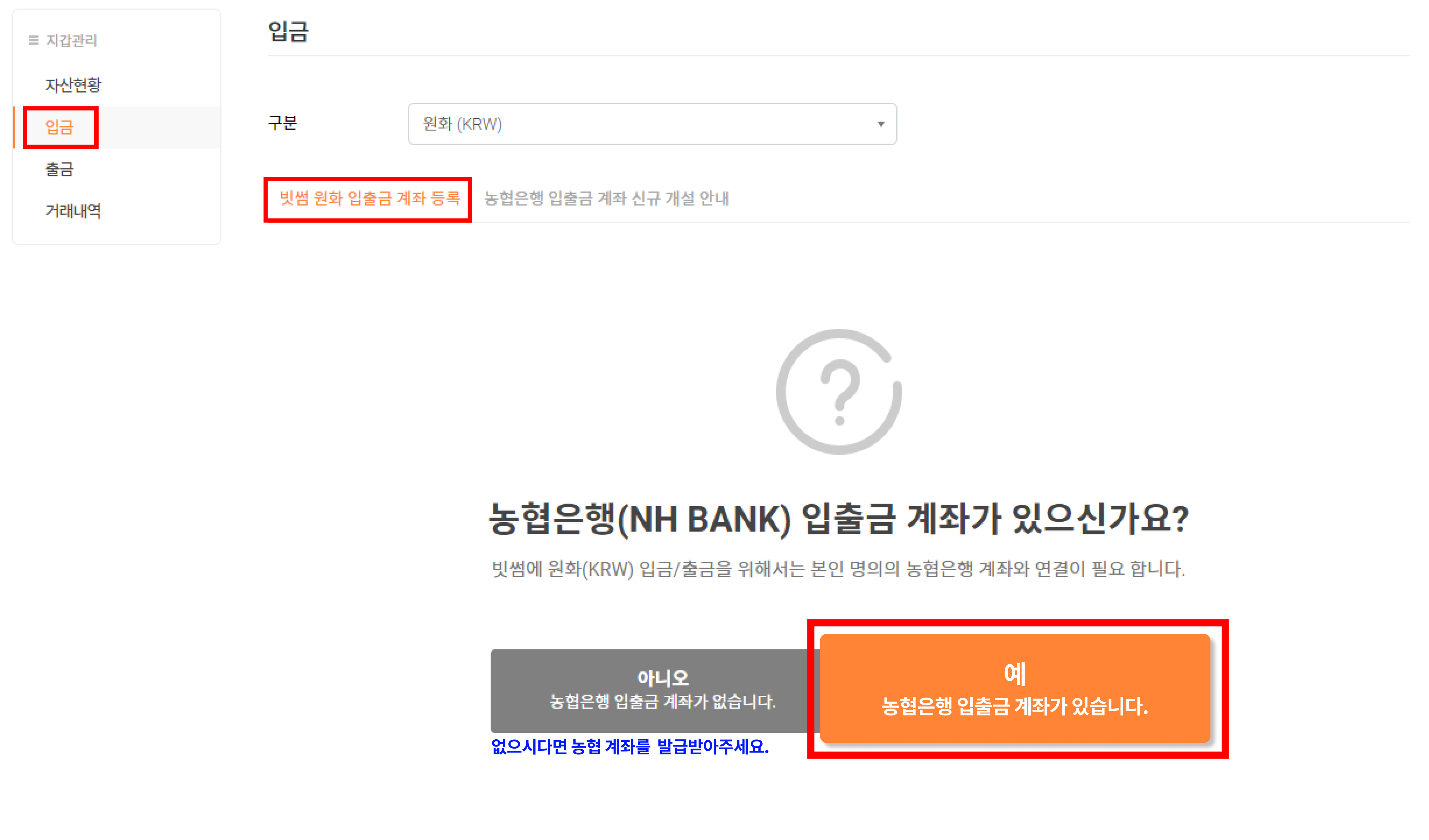 2) 입금 - 빗썸 원화 입출금 계좌 등록에서 ■예를 클릭해주세요.