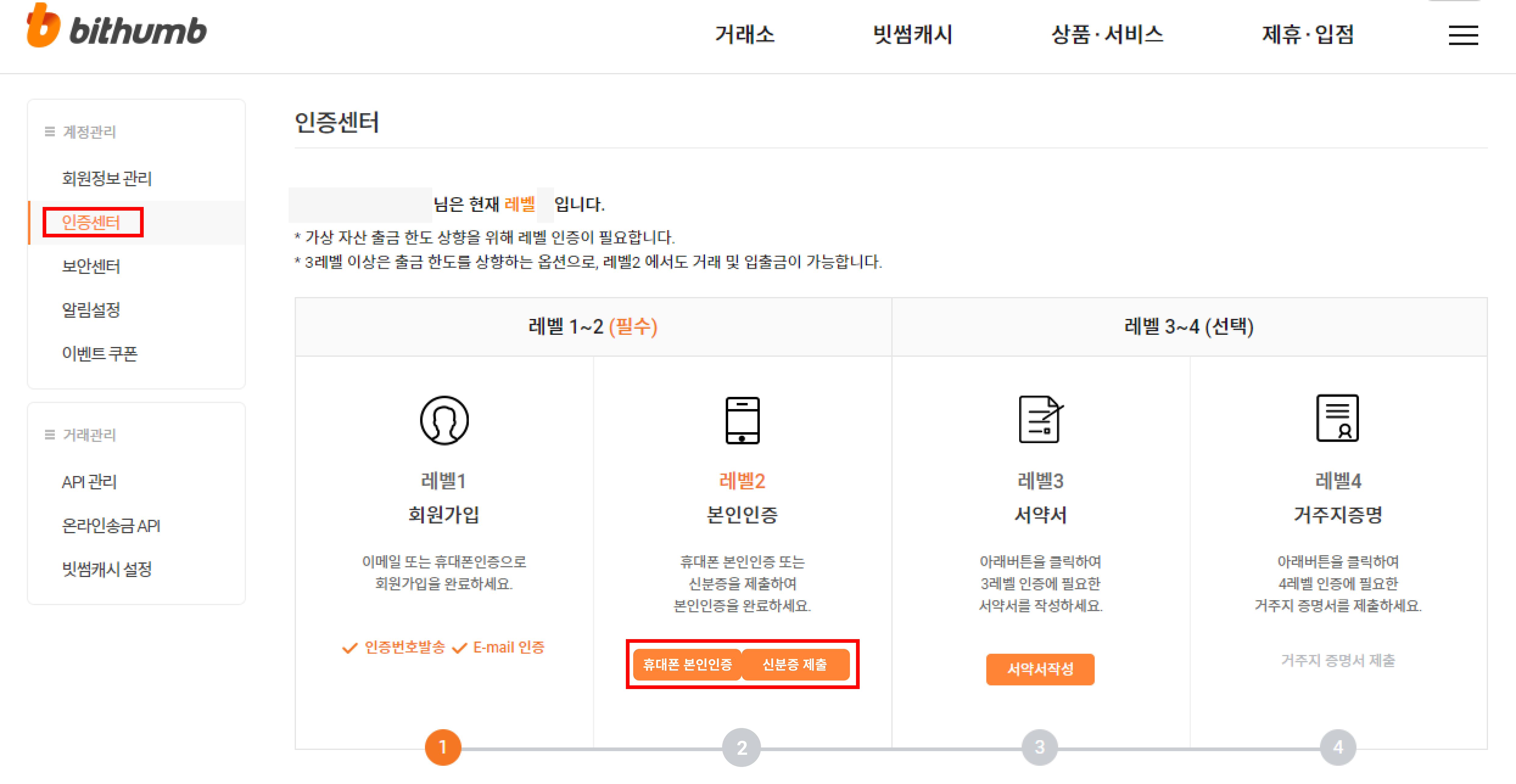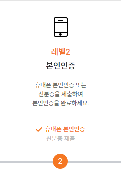 (2) LEVEL 2 만들기 - 휴대폰 본인인증 또는 신분증을 제출하여 본인인증 완료하기