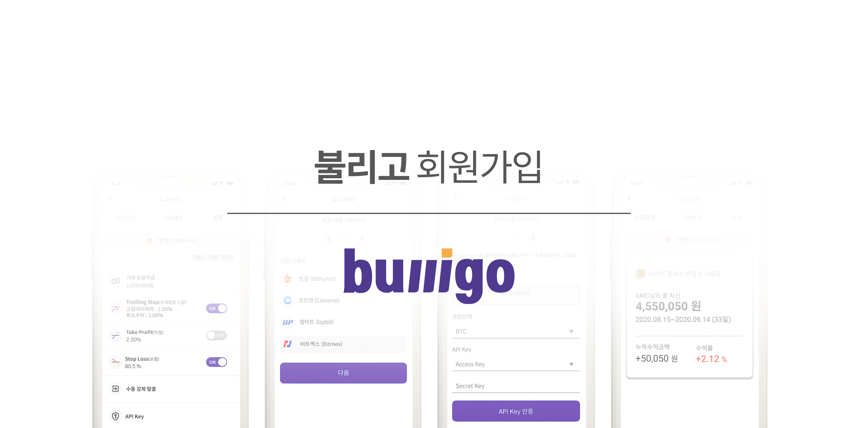가상자산/암호화폐는 익숙하지 않은 일반 이용자들에게는 처음엔 쉽게 접근하기 어려운 느낌이 들 수 있습니다. 하지만 저희 불리고와 함께라면 어렵지 않게 손쉽고 간편한 투자가 가능합니다!
