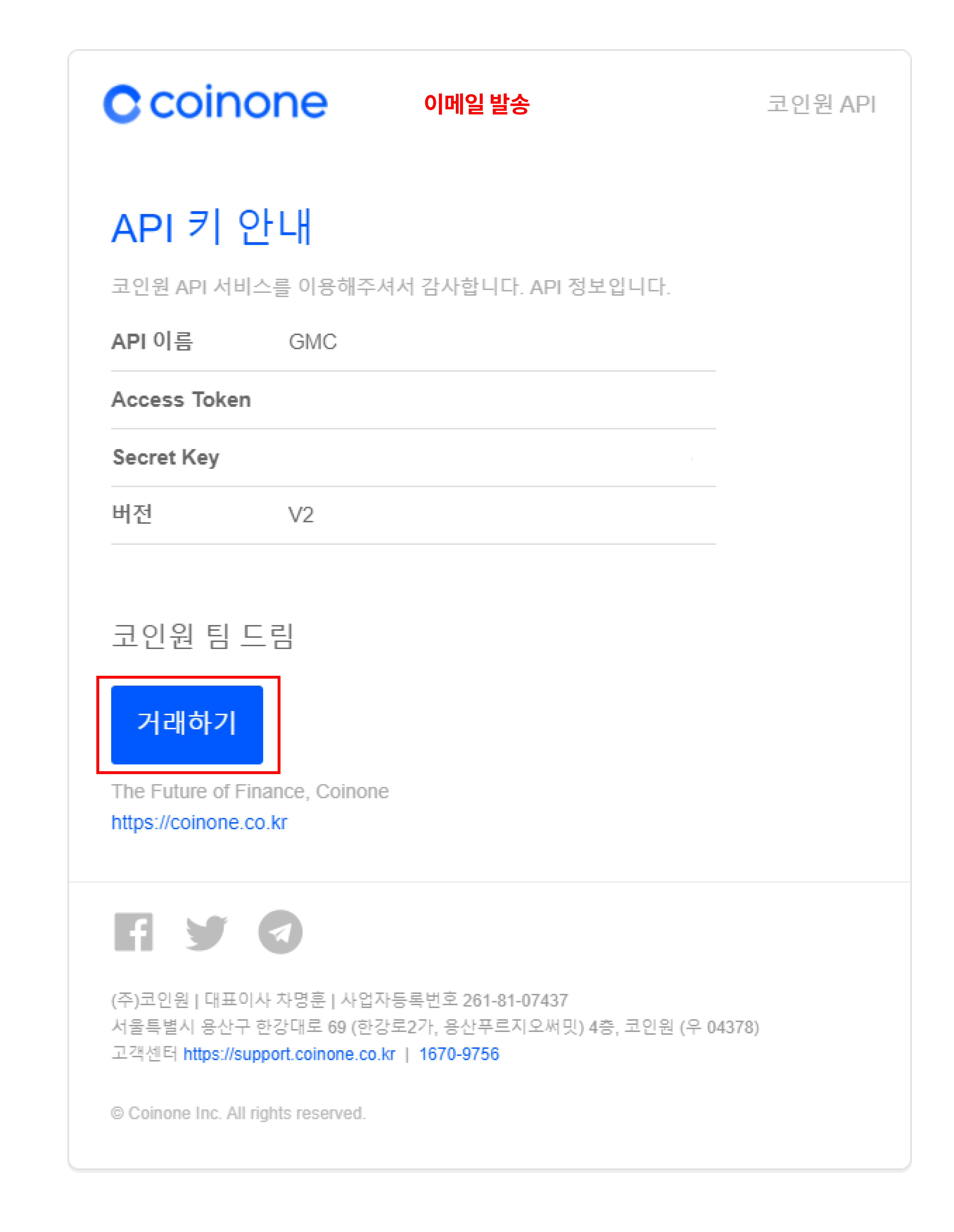 5. 입력한 이메일로 API 키가 전송되었으니, 이메일을 확인해보시고 거래를 시작하십시오.
