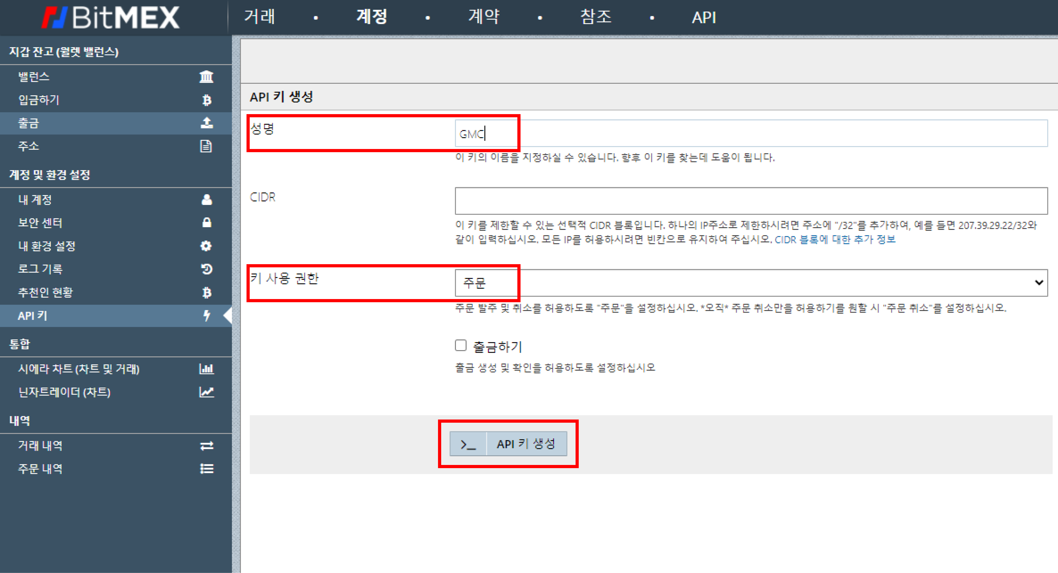 불리고 서비스에서 비트멕스 거래소를 이용하기 위한 2번째 단계, 비트멕스 - API Key 발급받기입니다.