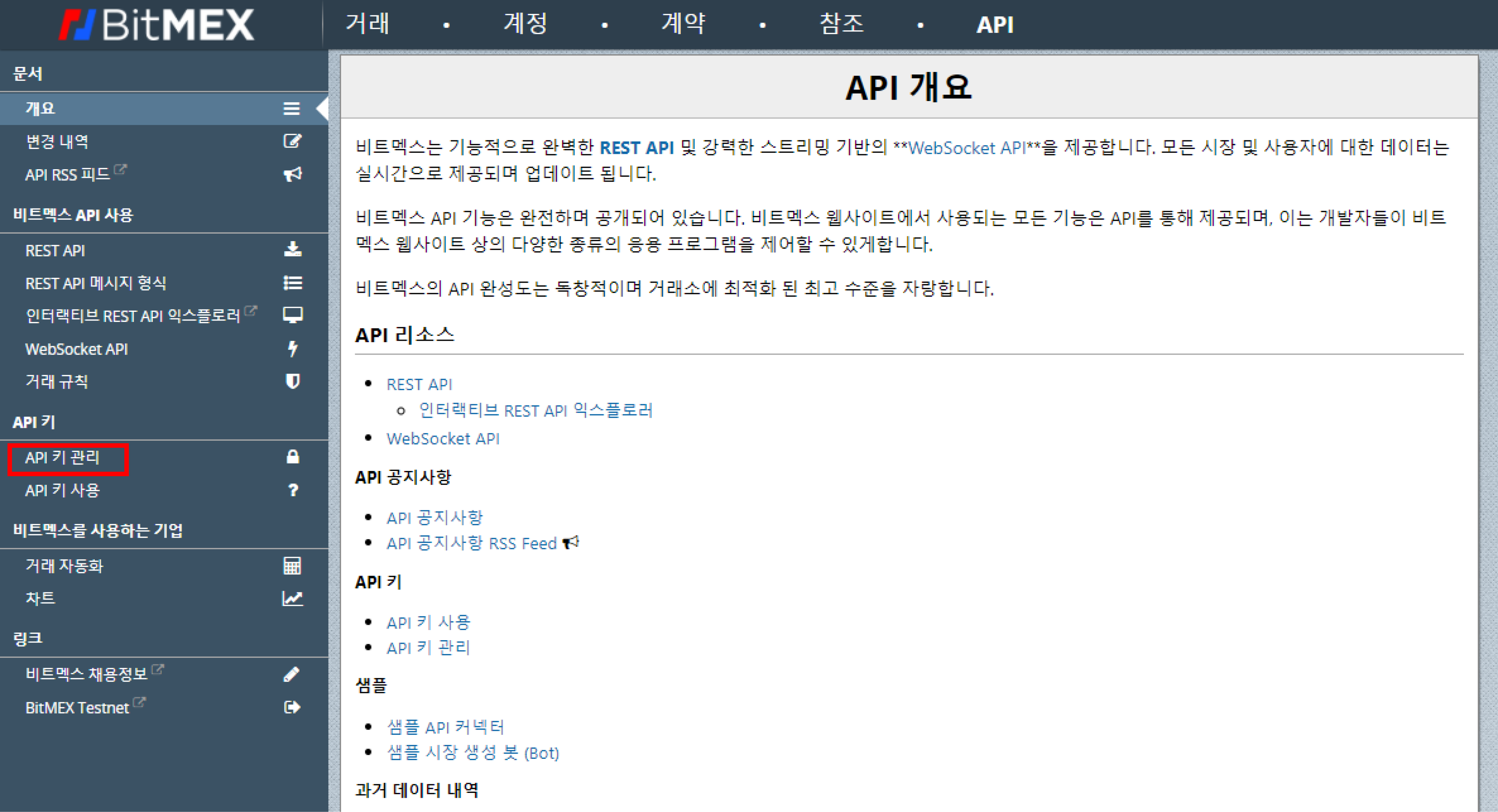다음은 비트멕스에서 API 연동을 위한 방법입니다.
